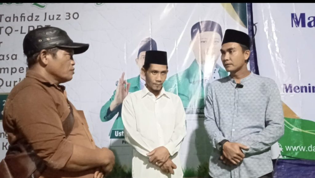 Ket. gambar : Ketua Panitia Iwan (kanan) dan Ustadz Mutrovik, S.sos (tengah) saat diwawancarai oleh Wartawan.